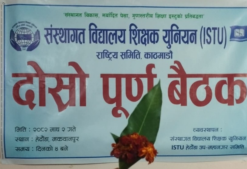 संस्थागत विद्यालय शिक्षक युनियन (ISTU) को दोस्रो पूर्ण बैठक २०८२ माघ २ र ३ गते…